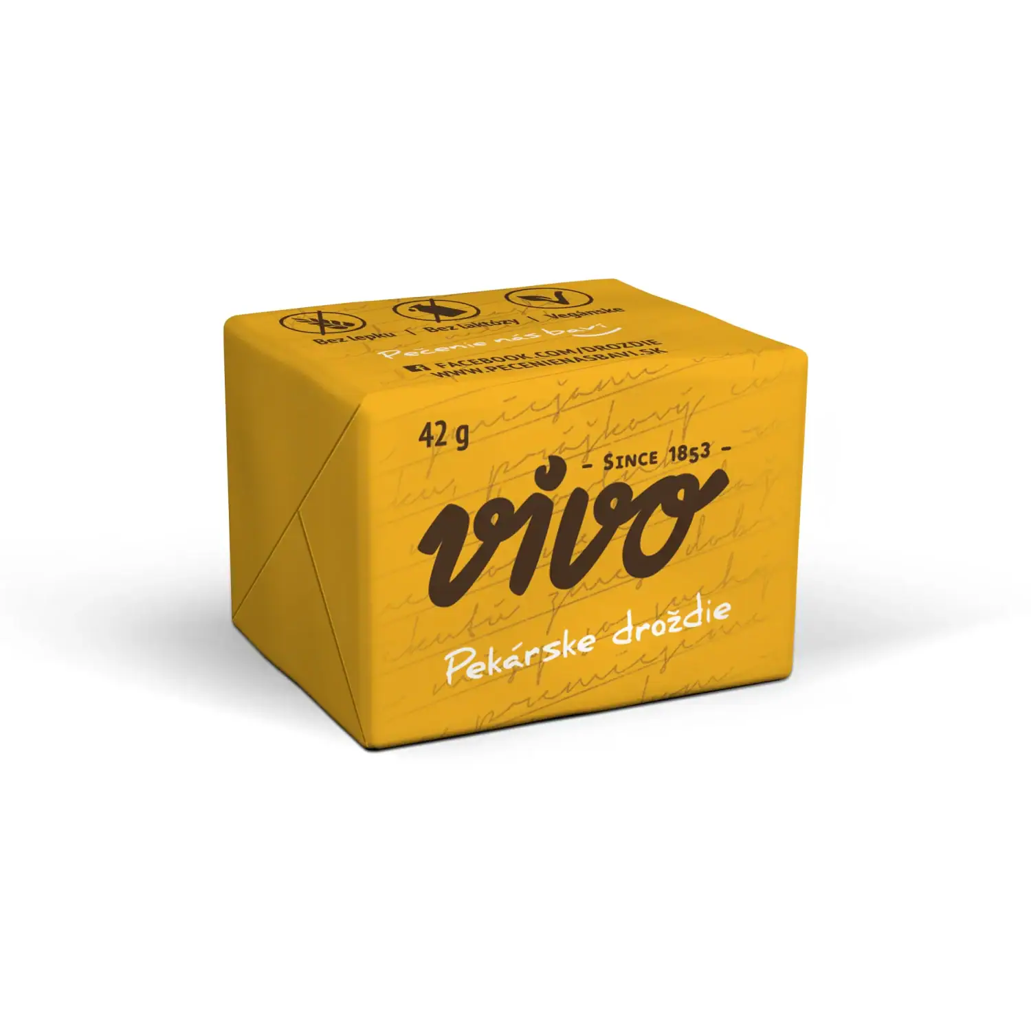 Droždie VIVO je balené v kockách s hmotnosťou 42 g. Toto množstvo je vhodné cca na 1 kg múky. Pre zachovanie vynikajúcej kvality je potrebné skladovať ho v chlade pri teplote od 2 do 8 °C.