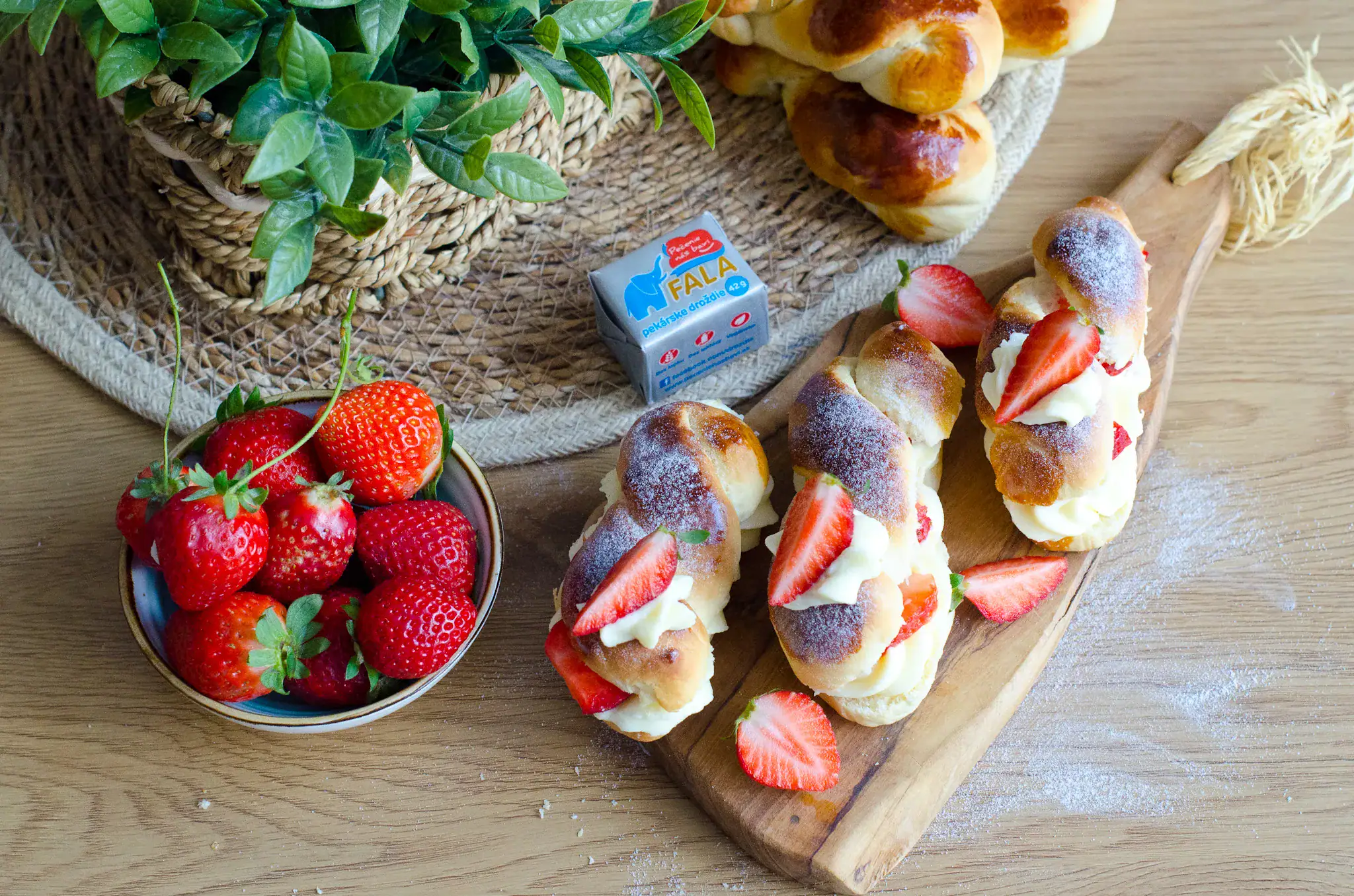 Cesto po vykysnutí rozdelíme 18 častí. Vytvarujeme do tvaru bochníka, vyvaľkáme na šúľok dlhý asi 12 cm a spletieme ho do pletenca. Poukladáme na plech, potrieme rozšľahaným vajíčkom.