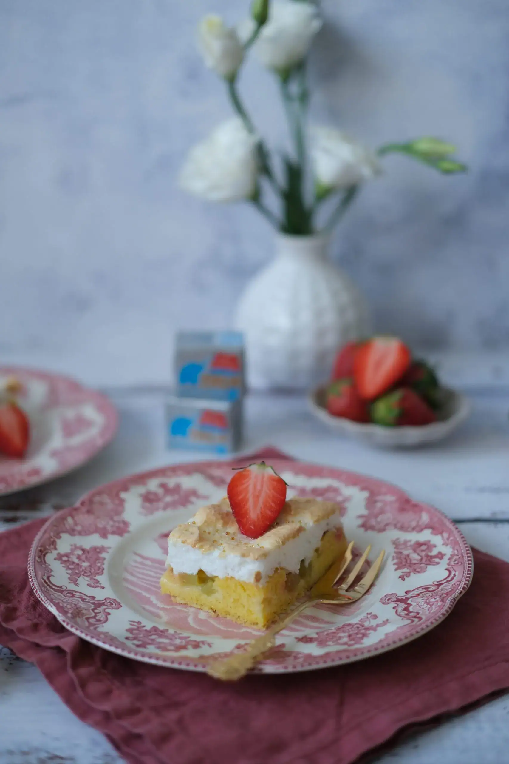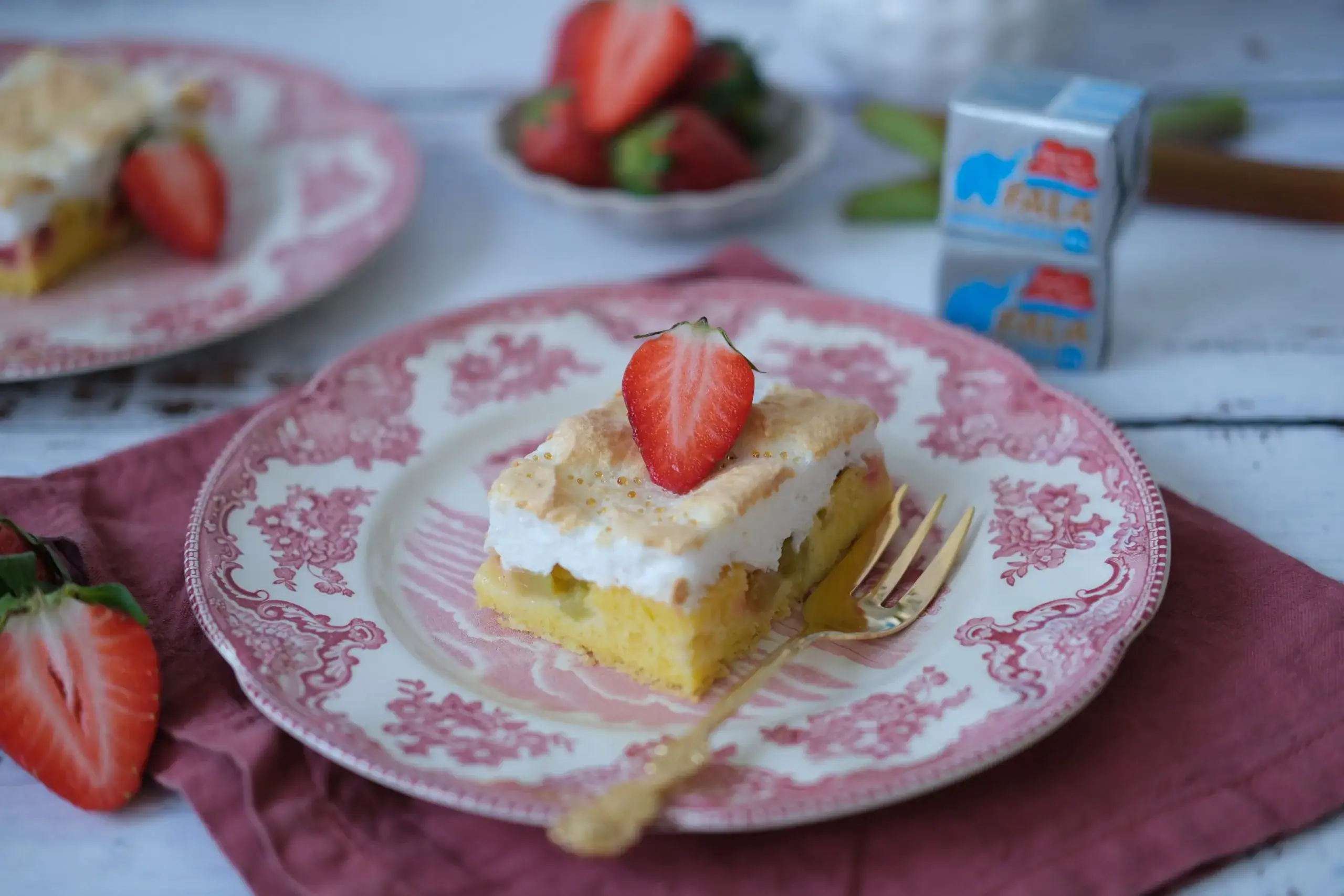 Vyskúšajte aj vy tento skvelý recept na chutný rebarborovo-jahodový koláč so snehom.