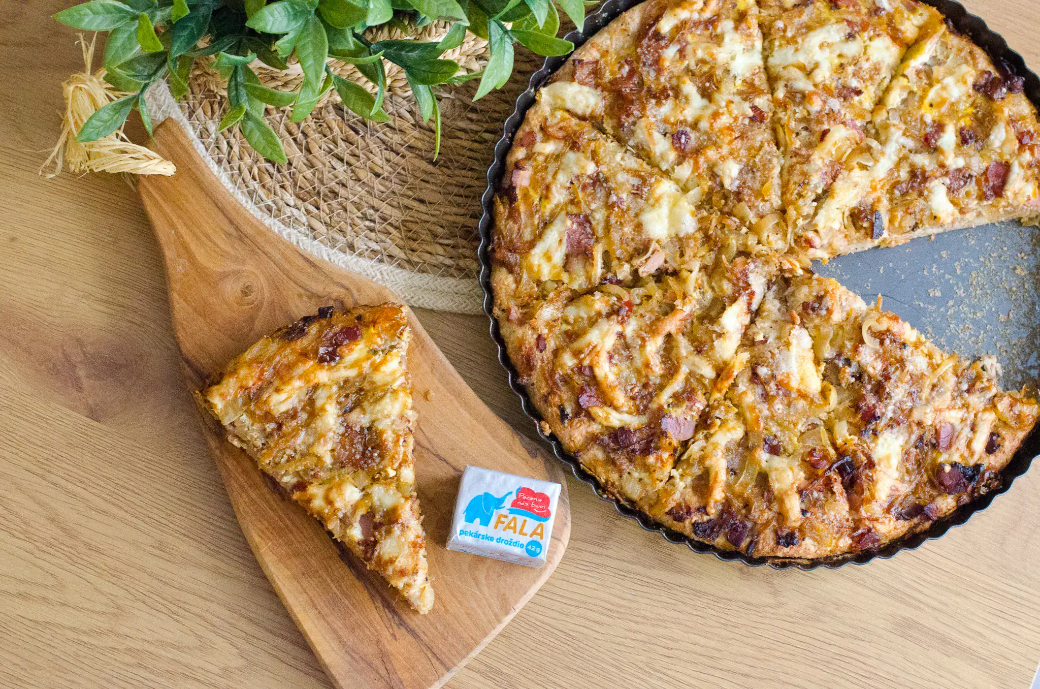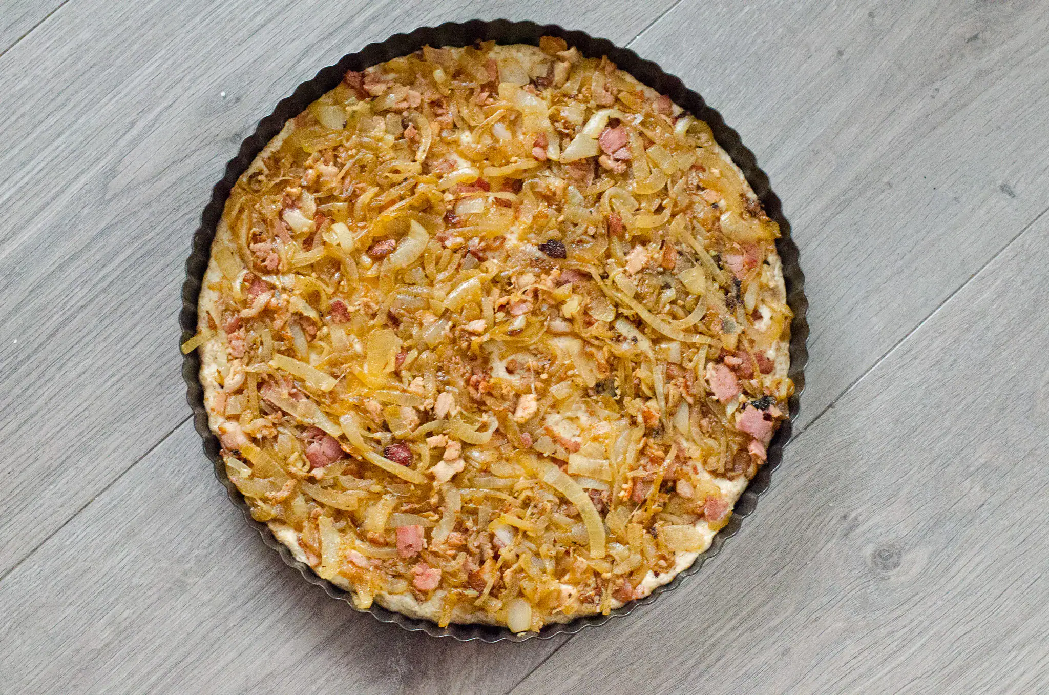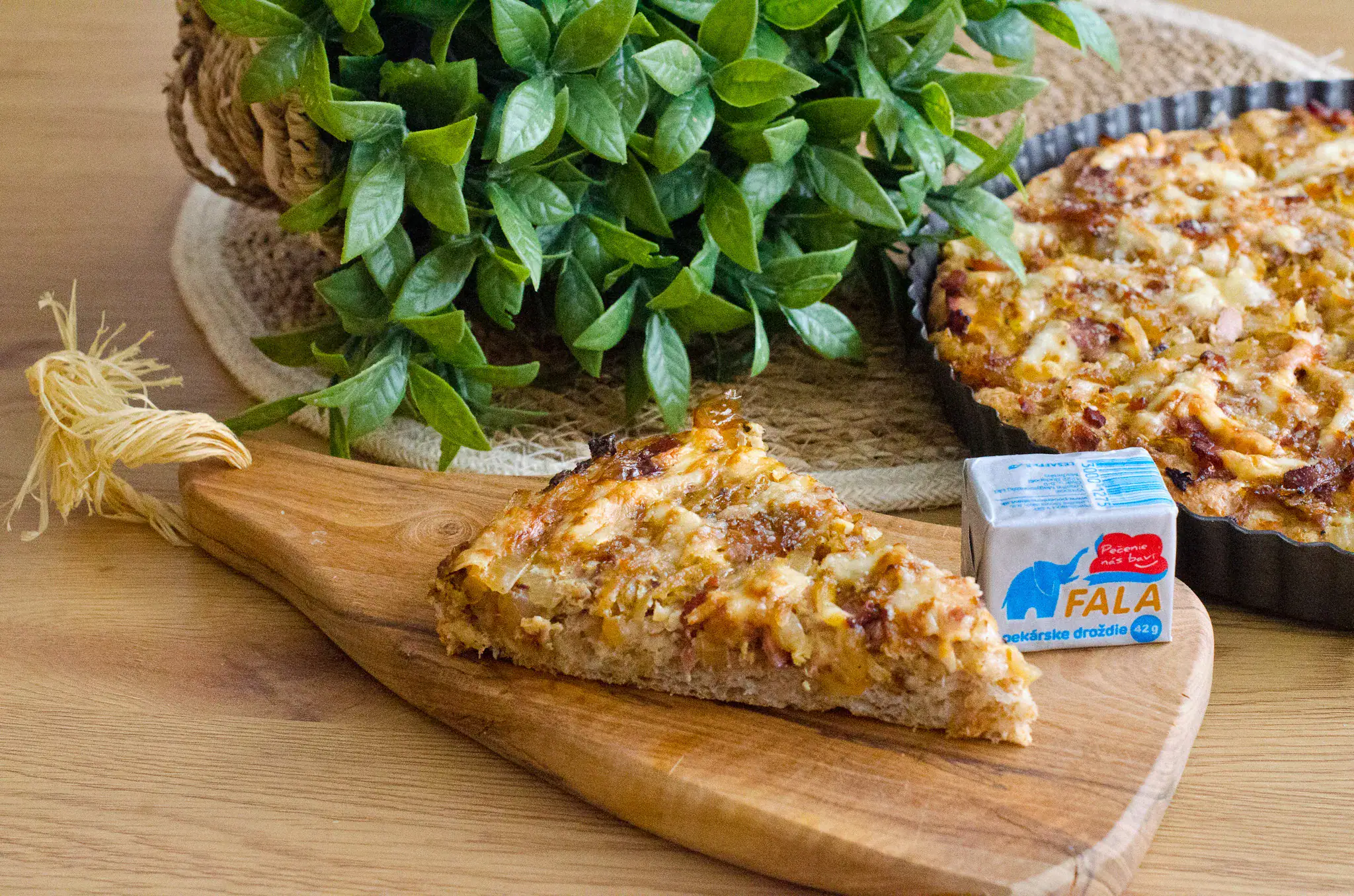 Chuť kysnutého cibuľového koláča je jemne sladkastá, ale zároveň slaná. Vyskúšajte tento koláč aj vy! Je výborný ako občerstvenie pre návštevy, hodí sa napríklad k pivu alebo vínu.