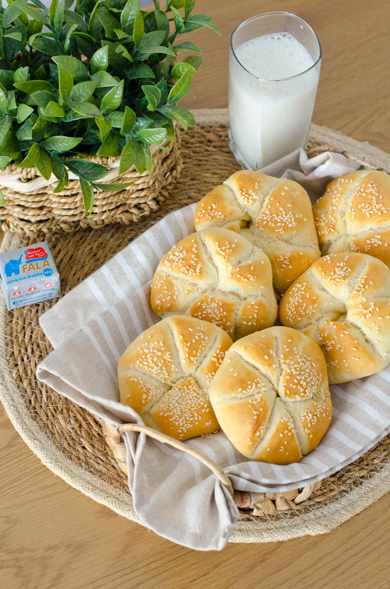 Pred pečením obrátime, potrieme vodou a posypeme sezamom. Pečieme pri 220°C približne 15 minút.